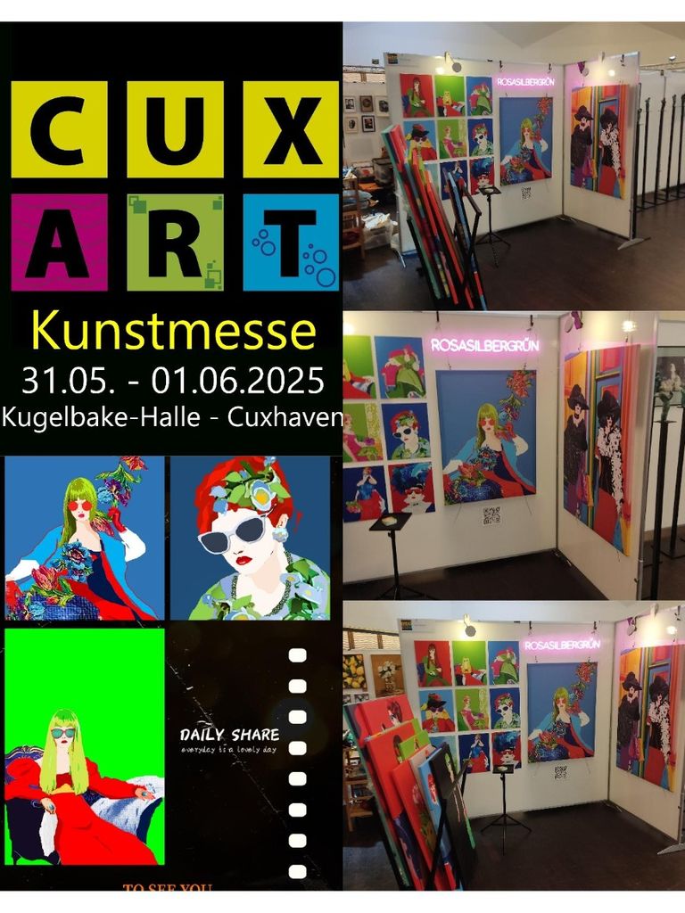 Ich konnte als Künstlerin zum ersten Mal an der CUX Art teilnehmen und ich fand eine inspirierende Atmosphäre vor, mit zeitgenössischer Kunst von unterschiedlichen Künstlerinnen& Künstler. Meine digitalen farbstarken Grafiken spiegeln die Verbindung von Farbe, Form und moderner Kunst wieder.