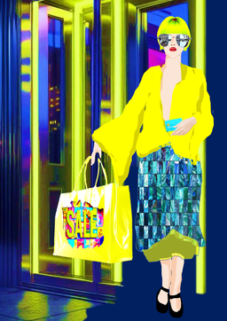 Meine neue Serie Shopping Girls zeigt Frauen mit dem Thema Einkauf. - mal elegant überladen, mal selbstbewusst und verspiel. Zwischen Tüten, Schaufenstern und Neonlichtern entfalte sich ein Kaleidoskop urbaner Selbstdarstellung.